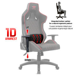 ACCOUDOIRS REGLABLES : Ses accoudoirs sont réglables 1D, c'est-à-dire une dimension. Ils se déplacent de haut en bas en pressant simplement sur un bouton. Pour un soutien et un confort supplémentaire de vos avant-bras et coudes, le revêtement supérieur des accoudoirs est rembourré.