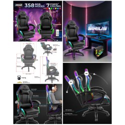 ENTREZ DANS L’UNIVERS SIRIUS ! Préparez-vous à vivre une expérience gaming hors du commun avec SIRIUS, le siège qui allie style futuriste et confort absolu. Ses 30 LED RGB intégrées diffusent une lumière personnalisable pour créer une ambiance immersive, adaptée à votre humeur et à vos sessions de jeu. Connecté en USB, il s’illumine au rythme de vos envies pour transformer votre setup en véritable cockpit.