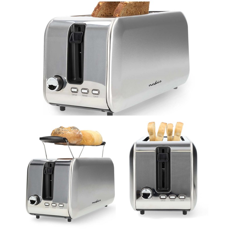 Grille pain 1450W acier inoxydable 2 Emplacements Thermostat réglable dégivrage