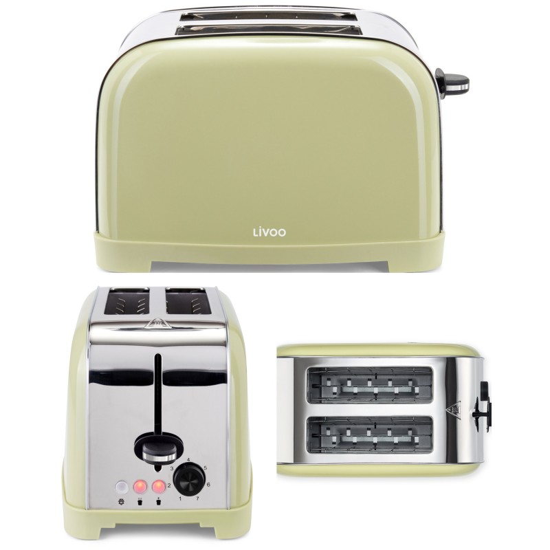 Grille-pain rétro vert 850W 2 FENTES en acier inoxydable