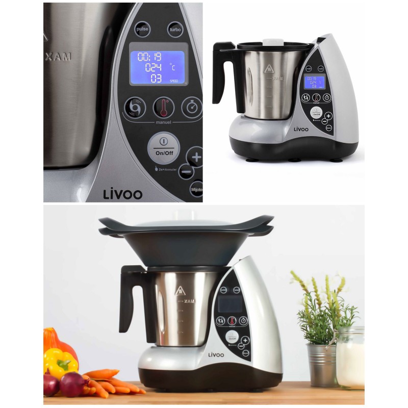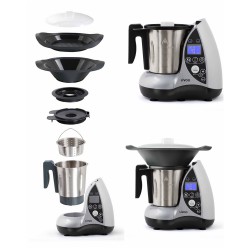 Robot culinaire chauffant Gris 1500W 12 fonctions Bol en inox 3L écran LCD