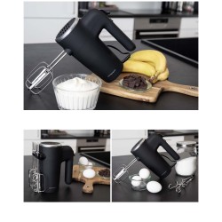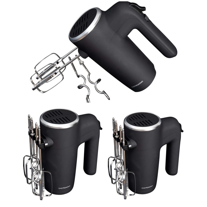 • Ensemble complet comprenant des batteurs chromés, des crochets à pâte et un porte-accessoires