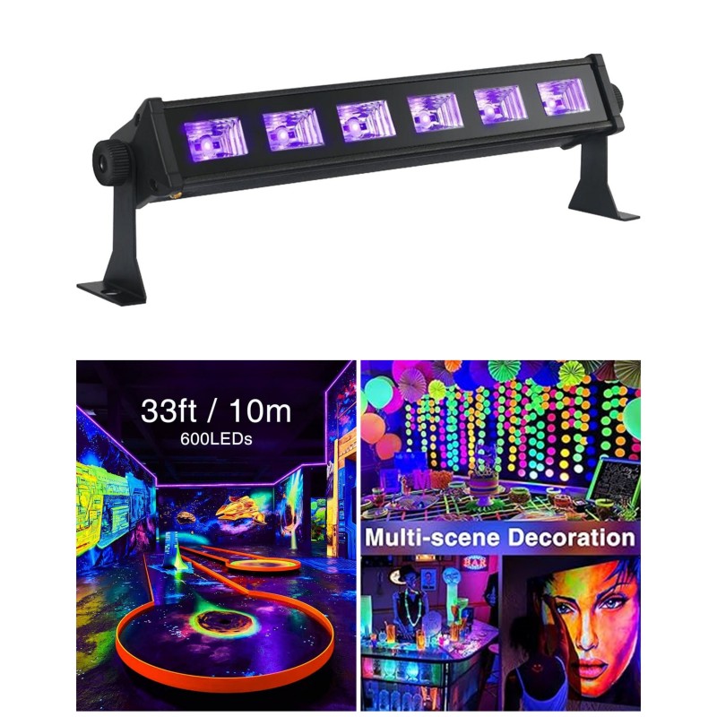 Jeux de lumière BARRES UV à 6 LEDS 6x3W lumière noire soirée dansantes fluo PA DJ LED MIX SONO BAR CLUB LASER