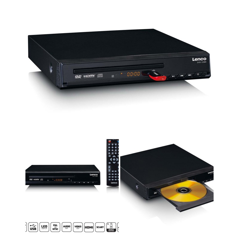 Le lecteur de DVD DVD-120BK de Lenco est un complément utile pour lire vos DVD préférés. Le lecteur de DVD peut également être utilisé comme lecteur de CD. En outre, l'appareil est équipé d'un port HDMI et d'un port péritel. Vous pouvez ainsi lire des vidéos de différentes manières.