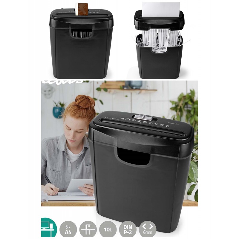 • Puissant : peut déchiqueter jusqu'à 6 feuilles de papier à la fois et détruire les cartes bancaires