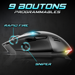 Des boutons pensés pour la victoire : Avec ses 9 boutons entièrement programmables, vous avez toujours une longueur d’avance. Activez le mode RapidFire pour des tirs ultra rapides, ou passez en mode Sniper pour viser avec une précision absolue. Idéal pour les clutchs et les headshots à répétition !