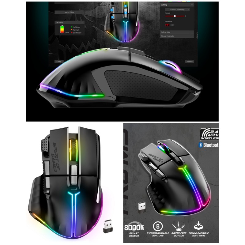 Triple mode : La PRO M5 est conçue pour offrir une connectivité sans limites grâce à ses trois modes : sans fil 2,4 GHz, Bluetooth, et filaire USB. Profitez d'une liberté totale avec une distance de fonctionnement allant de 6 à 10 mètres, pour une flexibilité maximale selon votre environnement de jeu. Avec une batterie lithium rechargeable de 600 mAh, la PRO M5 offre une autonomie impressionnante de 90 heures sans rétroéclairage RGB. La recharge rapide en seulement 3 heures permet de retourner dans l'action sans attendre.