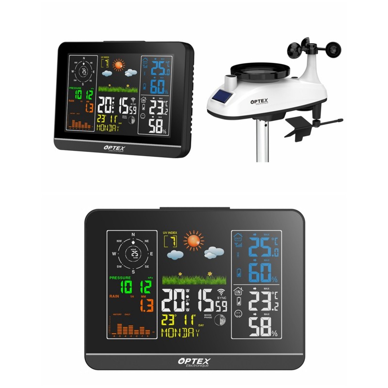 STATION METEO PRO COULEUR WIFI HEURE/ANEMOMETRE/PLUVIOMETRE EXTERIEURE + Porte clé siffleuse compatible Application TUYA